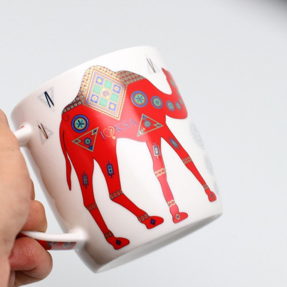 كوب نجد أو الكوب النجدي: التصميم مستوحى من فن النقش النجدي ، وهي أشكال فنية متجذرة بعمق في هوية منطقة نجد في قلب المملكة العربية السعودية. يتم التعبير عن الشكل الفني من خلال رسم الأشكال الهندسية والرموز القبلية ورسمها بألوان نابضة بالحياة للترحيب بالضيوف